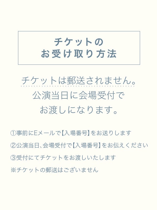 日時 :令和8年6月27日 昼の部:13:30会場 - 14:00開演 場所 :国立文楽劇場 演奏会チケット 全席自由席 【 チケットのお受け取り方法 】 ご注意:チケットは郵送されません。 公演当日に会場受付でお渡しになります。 ①事前にEメールで【入場番号】をお送りします。 ②公演当日、会場受付で【入場番号】をお伝えください。 ③受付にてチケットをお渡しいたします。